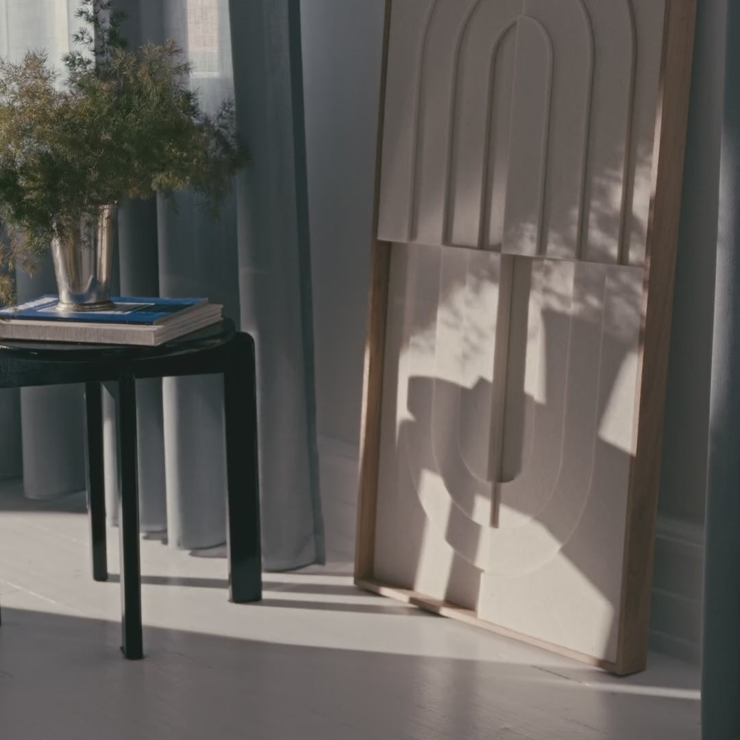 Kvadrat Really creates high-quality circular materials from textile waste; A new engineered materials made from upcycled textiles. The artworks in the collab are created using Textile Felt, which is made from 70% post-production ‘waste’ textile and 30% thermoplastic binder. The design of Arturel x Kvadrat acoustic artworks is our bestseller Arch series made from Kvadrat Really’s Textile Felt. The design is available in 3 sizes: One tile, two tiles and four tiles framed and ready for installation.